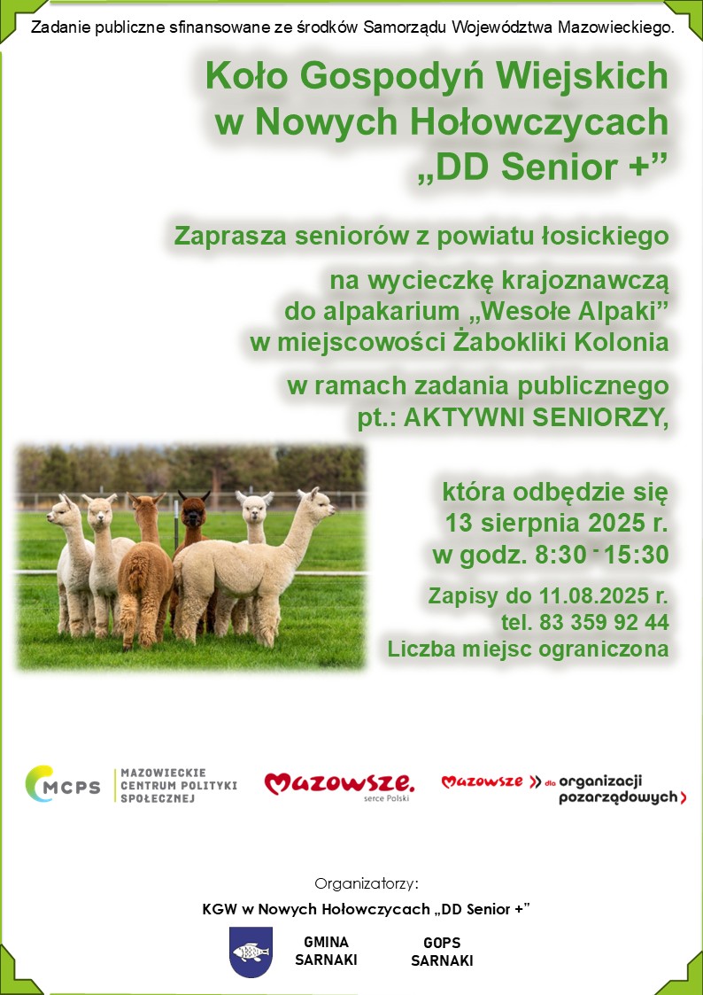 Osoby zainteresowane proszone są o kontakt pod numerem telefonu (83) 359-92-44 lub osobiście w Gminnym Ośrodku Pomocy Społecznej w Sarnakach, ul. Berka Joselewicza 3, 08-220 Sarnaki.
